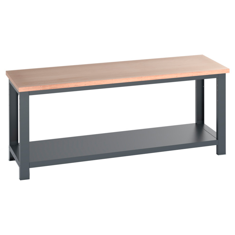Bott Cubio Basic Workbenches with Full Depth Shelf (fixed height) are heavy-duty, braced framework benches designed for industrial and professional workspaces.
